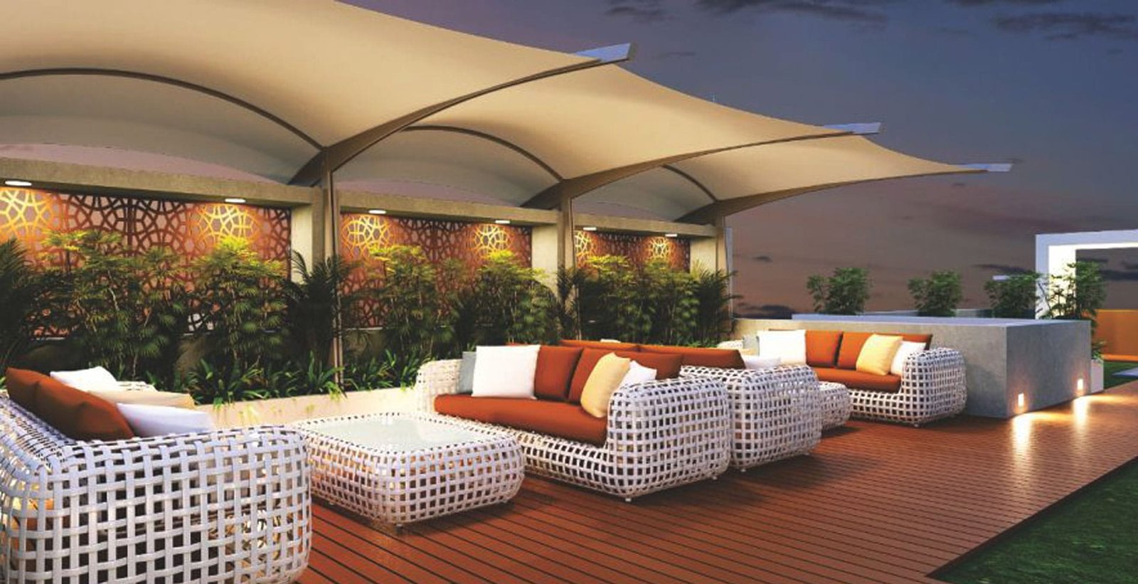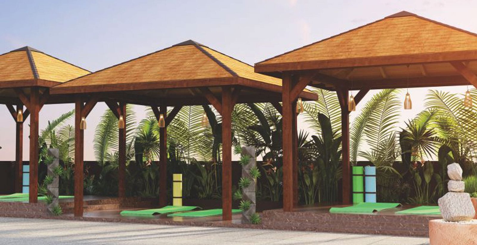 Elevated relaxation areas with scenic vistas.