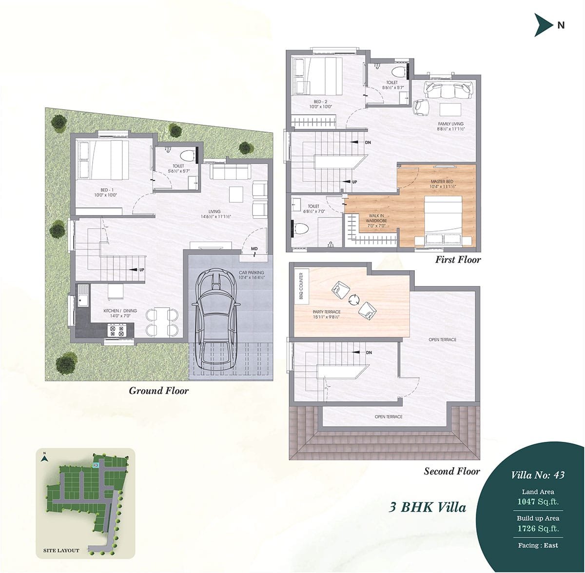 • TV points will be provided in Living and in all bedrooms and Telephone/ Internet Points in Living & Master bedroom.