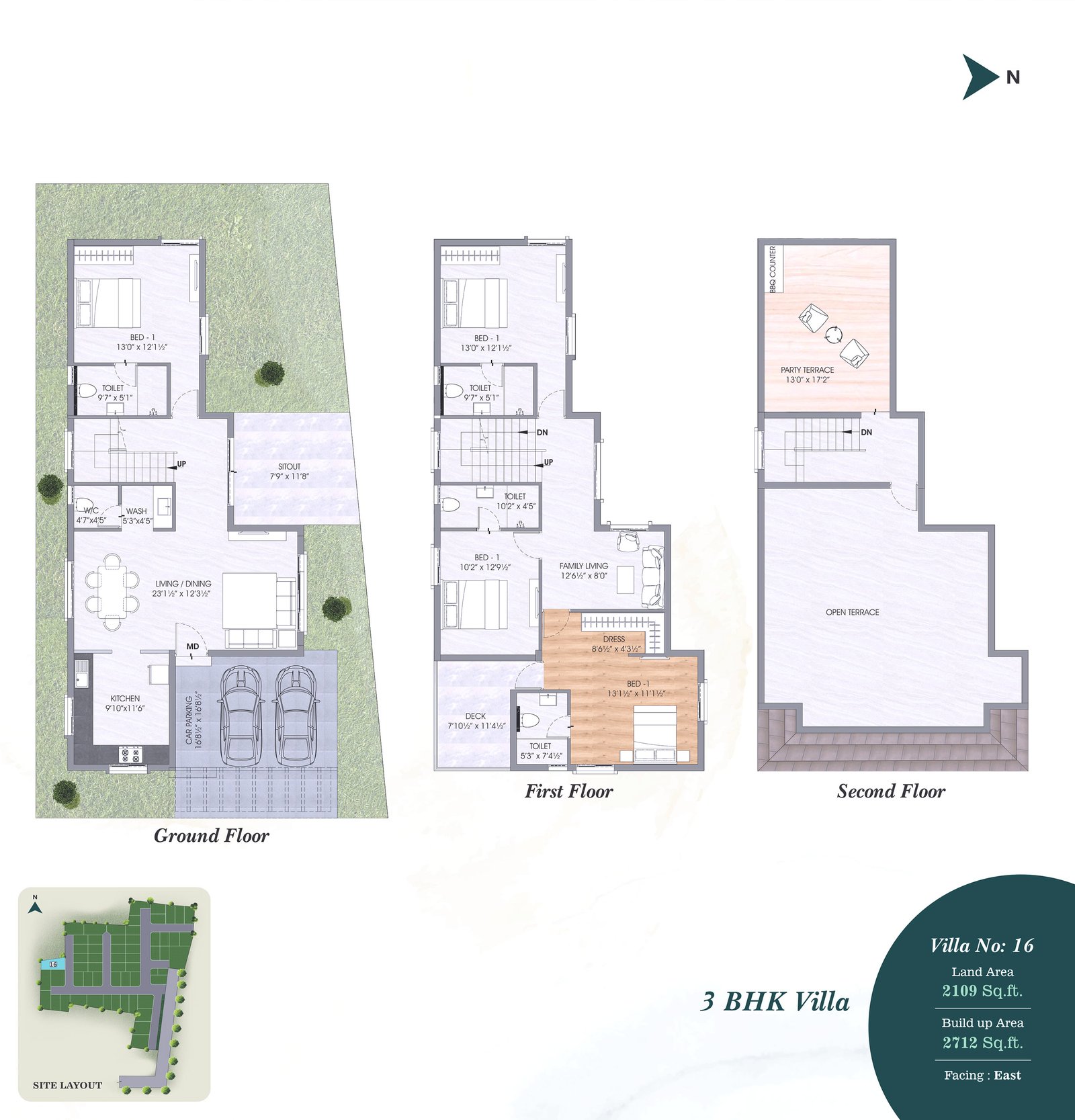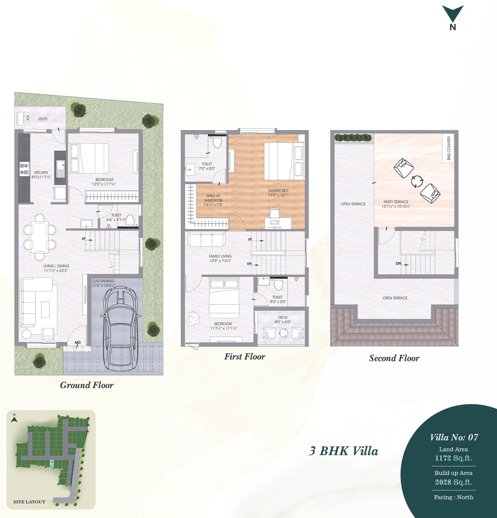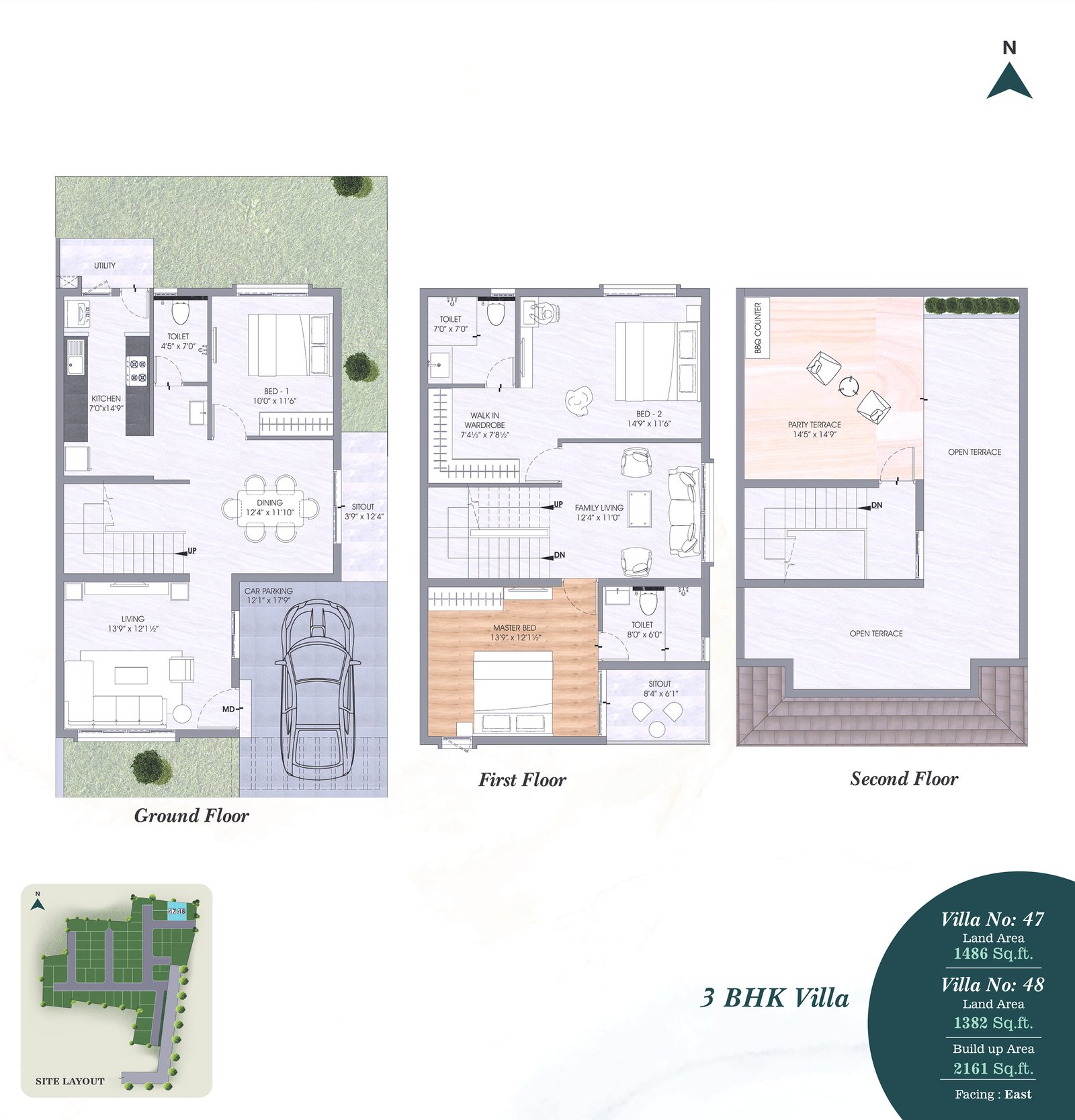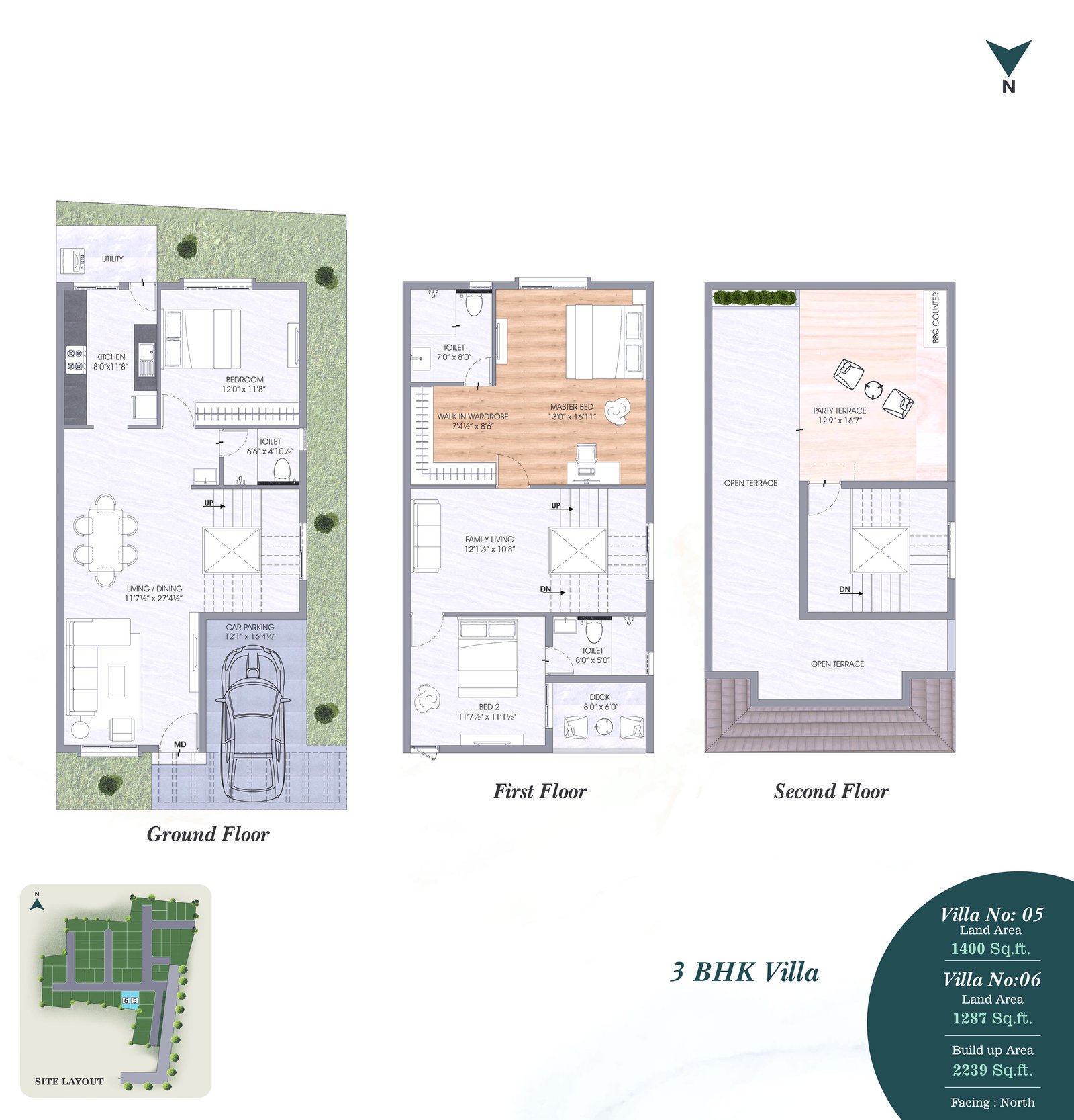 • Terrace-Weather proof tiles and 200MM X 1200MM wooden pattern vitrified tiles with spacers in Party Terrace.