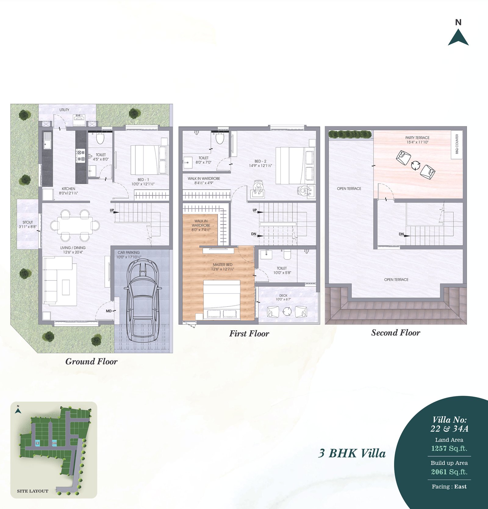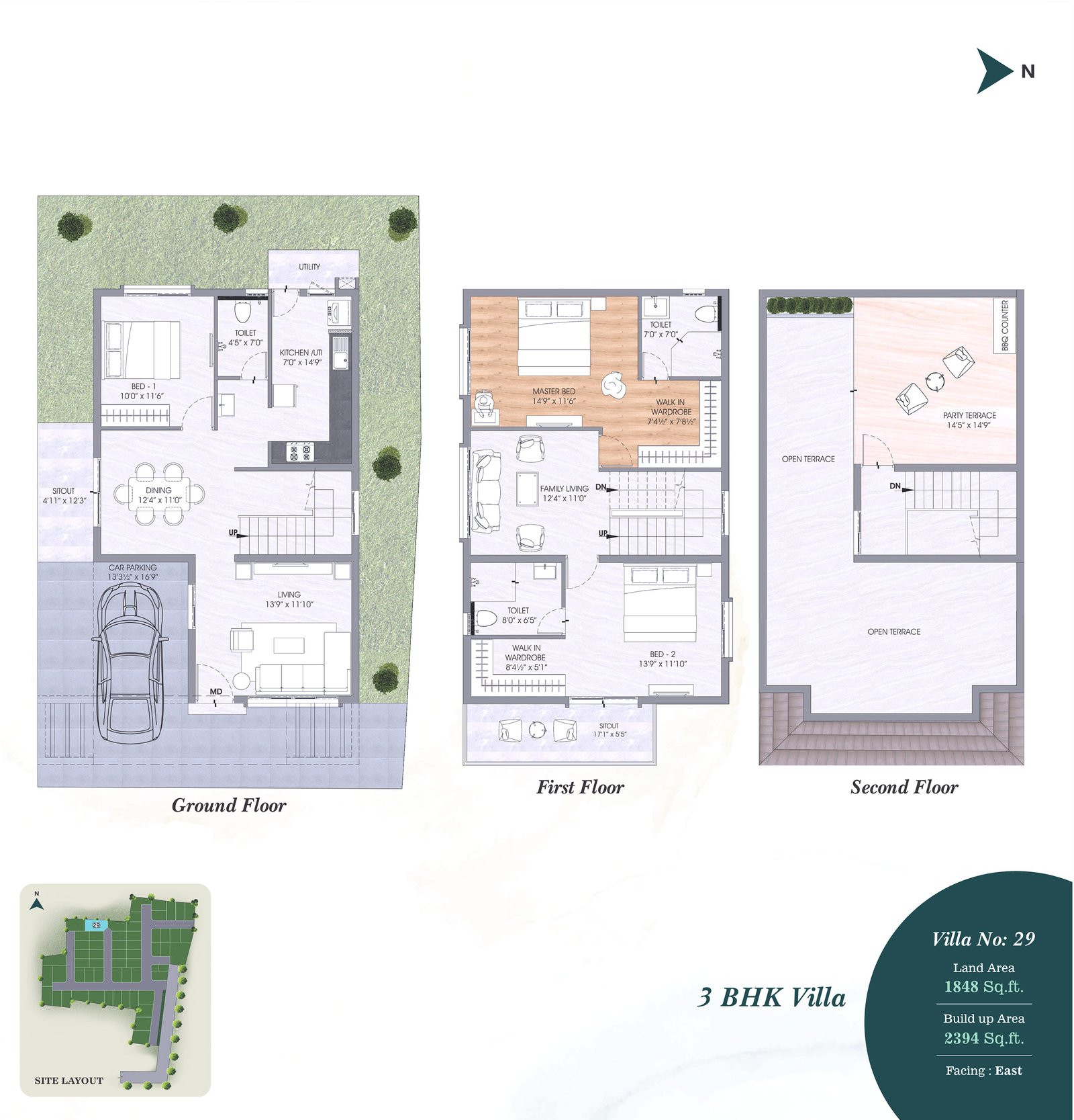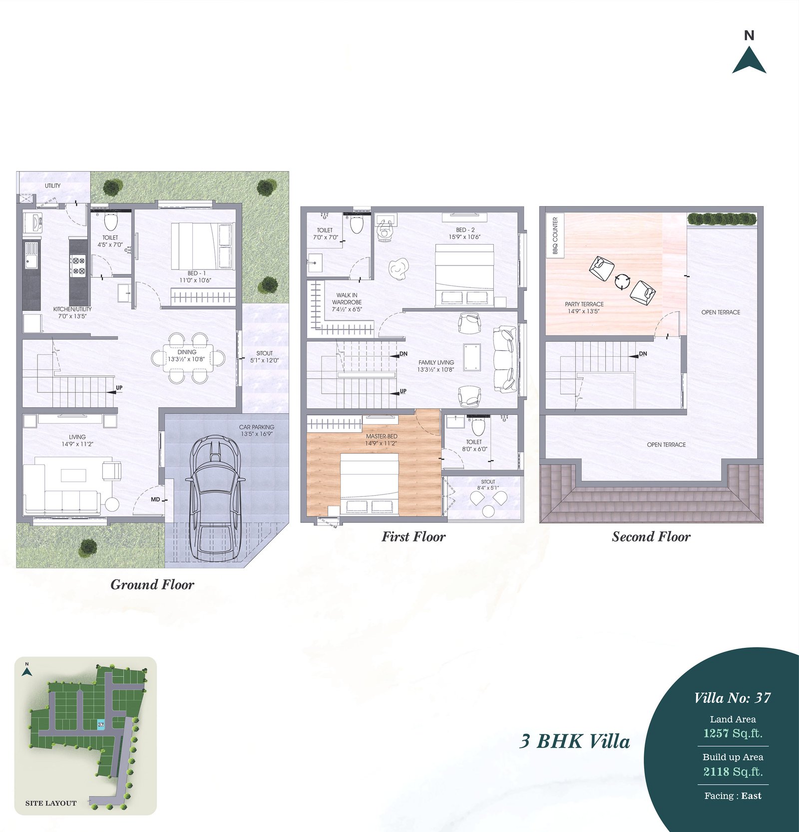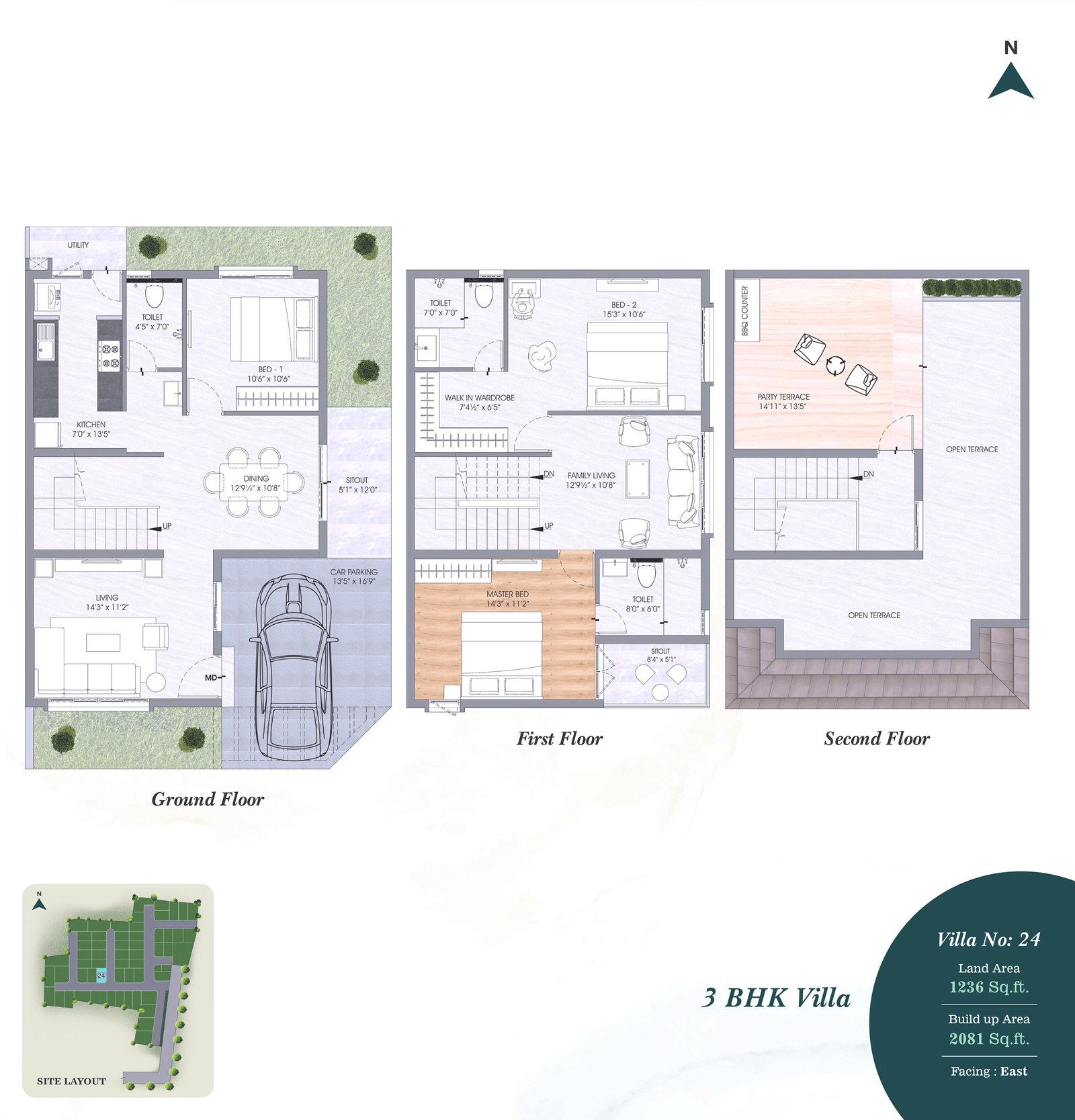 • Terrace-Weather proof tiles and 200MM X 1200MM wooden pattern vitrified tiles with spacers in Party Terrace.