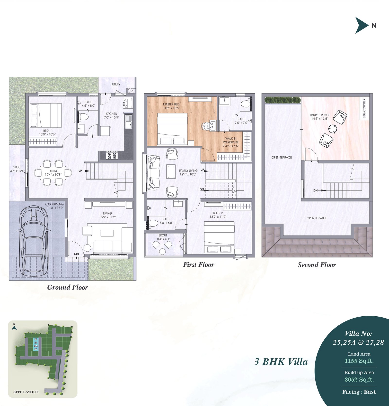 • SPLIT A/C provision with electrification will be provided in the Living room, Dining and in all Bedrooms.