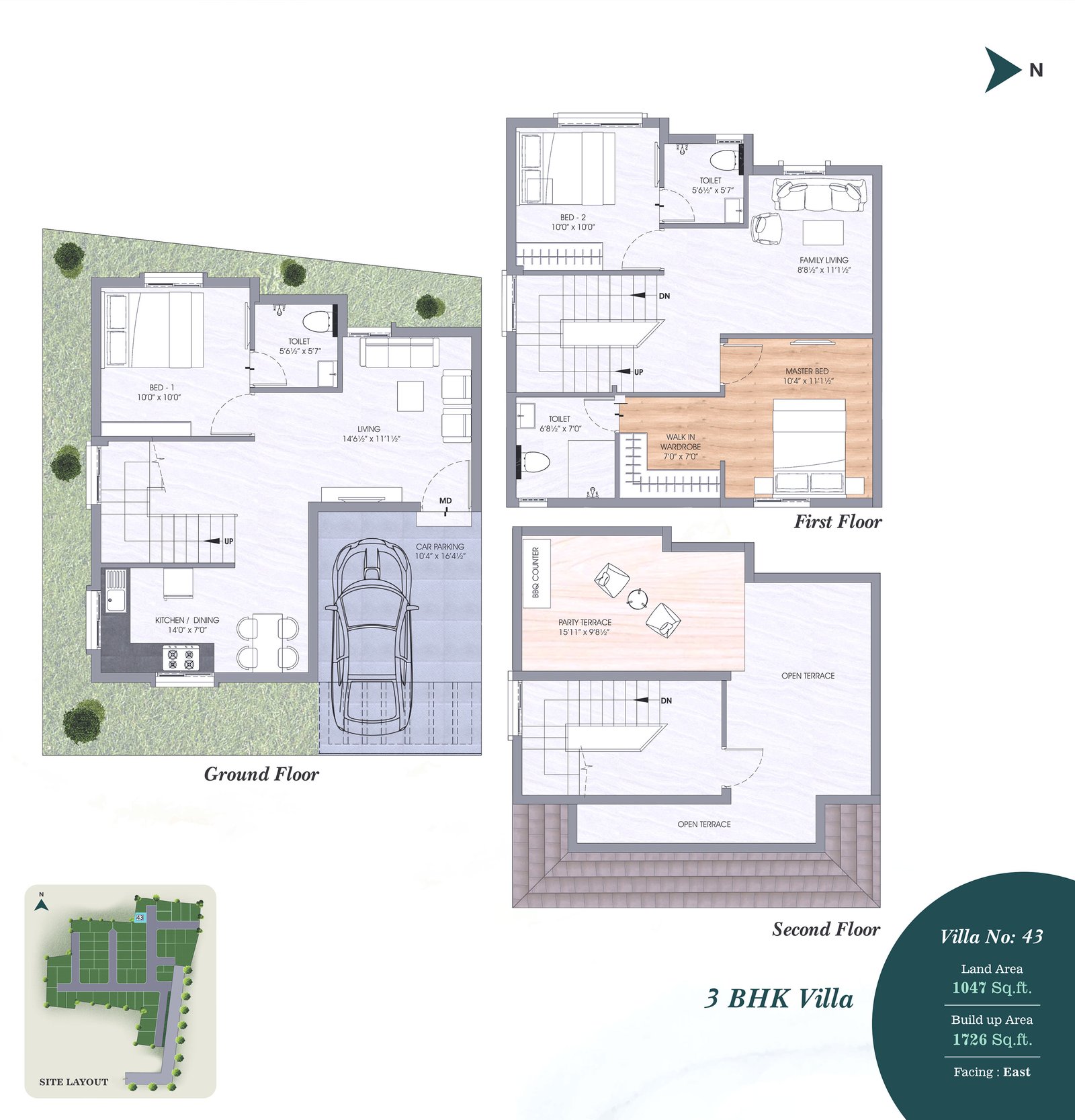 • TV points will be provided in Living and in all bedrooms and Telephone/ Internet Points in Living & Master bedroom.